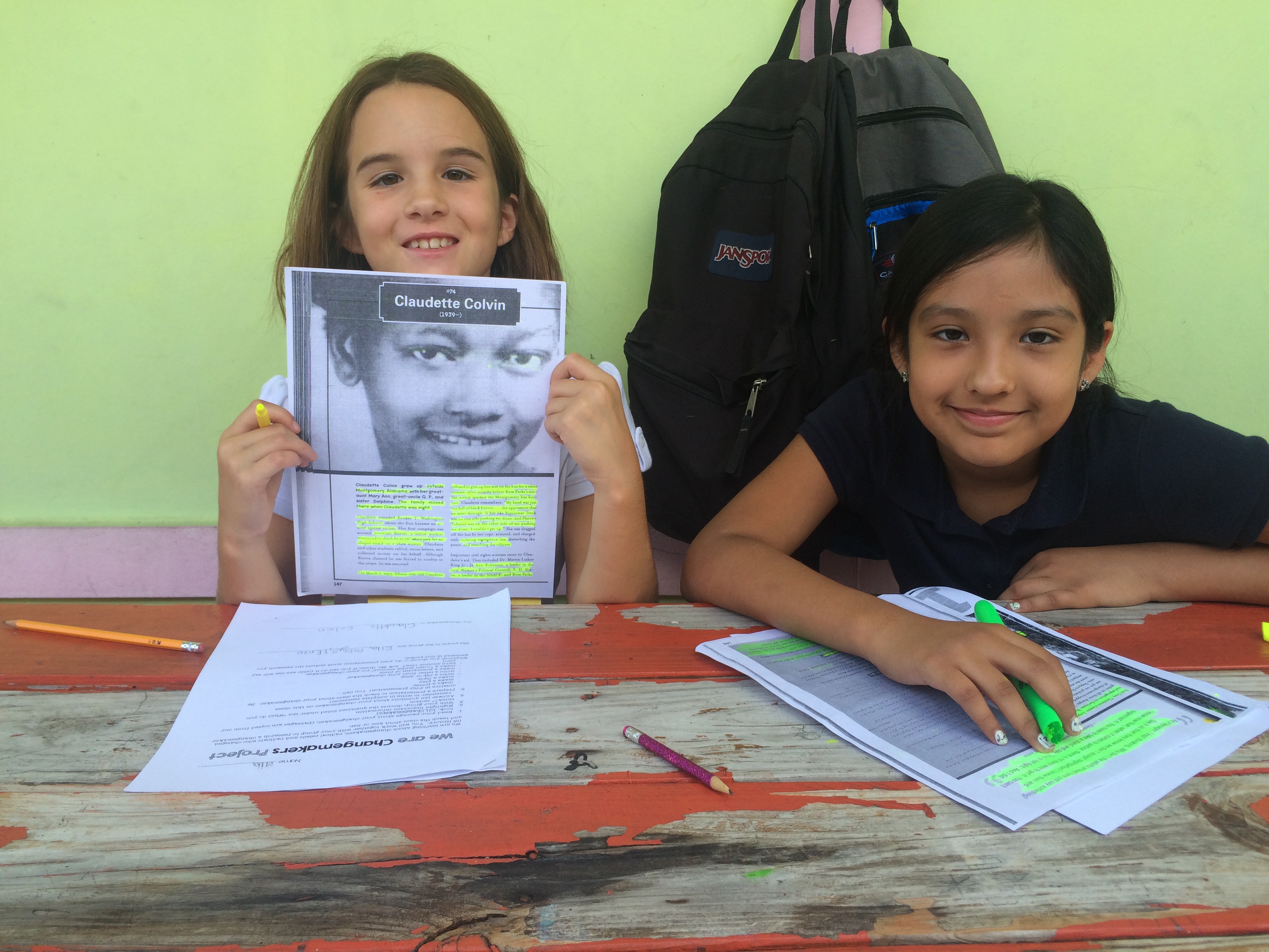 Our first project of the year was called “We Are Change Makers.” Students were split up into groups of 3 or 4, and they chose an individual to research from the book 101 Changemakers: Radicals and Rebels Who Changed US History. These individuals are people who are not often talked about in history classes, people like Claudette Colvin, who was the first black girl to not give up her seat on the bus (9 months before Rosa Parks!). Students spent two weeks researching their changemakers, and then created a presentation to teach the rest of the class about their changemaker. Our kids did incredibly well, and presented their projects in an array of ways, from plays to posters to PowToons.